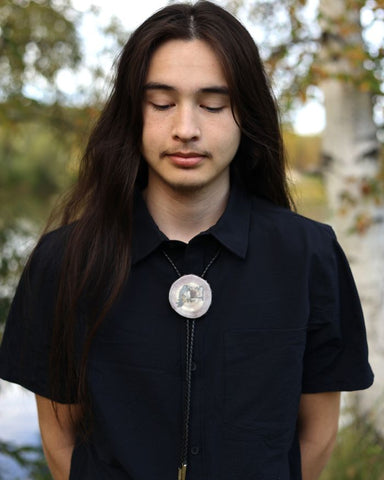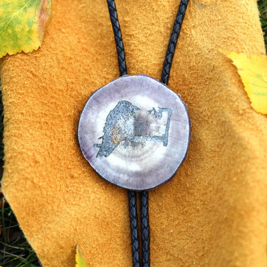Bolo Tie - Hand Carved Raven on Moose Antler - Dyed with Wild Alaskan Blueberries. Due to the natural variations in materials, colors, and patterns...