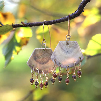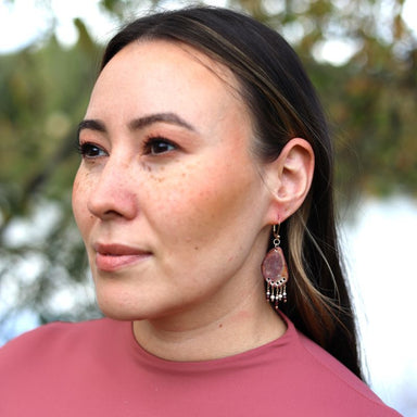 Ulu Shaped Natural Polished Moose Antler Red Jasper; 14/20 Gold Beads and wire wrapped headpins; Sterling Silver Welded jump rings; 14/20 Rose Gold...