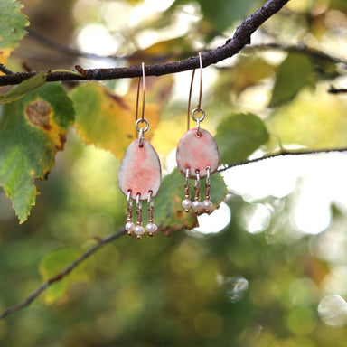 Polished Moose Antler - Dyed with Pink India Ink Pink FW Pearls; 14/20 Rose Gold Beads and wire wrapped ball headpins; Sterling Silver welded jump ...