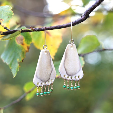Organic Ulu Shaped Natural Polished Caribou Antler Gold FW Pearls, 14/20 Gold Beads and wire wrapped headpins; Sterling Silver welded jump rings; 1...