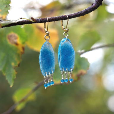 Sky Blue - Dyed with India Ink, Organic Shaped, and Polished Moose Antler Neon Apetite; Sterling Silver Beads, wire wrapped headpins, and welded ju...