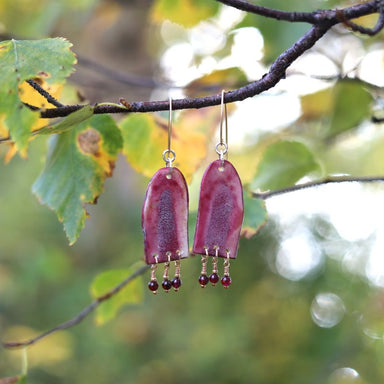 Polished Organic Shaped Moose Antler - Dyed with Alaskan Low Bush Cranberries. Garnet; 14/20 Rose Gold Beads, wire wrapped headpins, and welded jum...
