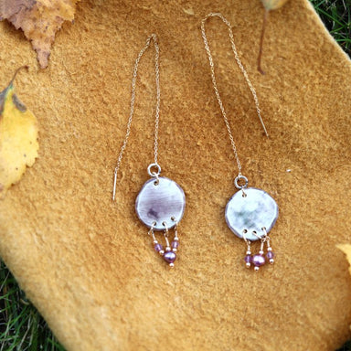 Organic Shaped and Polished Moose Antler - Dyed with Wild Alaskan Blueberries. MOP, Amethyst, Sterling Silver Beads, wire wrapped headpins, and wel...