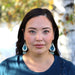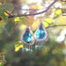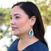 Light Blue Epoxy Inlay with Gold Leaf; Aquamarine FW Pearls, Amazonite Teal Crystals, 14/20 Gold Beads; Sterling Silver Beads, wire wrapped headpins and jump rings; 14/20 Rose Gold Marquis Ear Wires