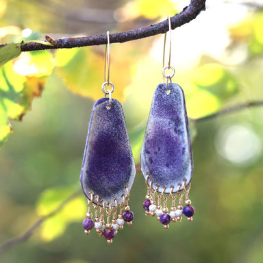 Polished Moose Antler - Dyed with Purple India Ink Purple FW Pearls, Herkimer Diamonds, 14/20 Sterling Silver Beads and wire wrapped headpins; Ster...