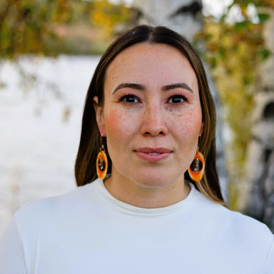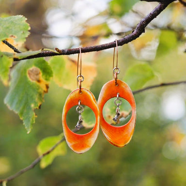 Polished Moose Antler - Dyed with Orange India Ink Sterling Silver Salmon Charm and jump rings; Copper jump rings; 14/20 Rose Gold Marquis Ear Wire...