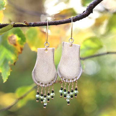 Natural Organic Shaped and Polished Moose Antler Olive Green FW Pearls; Herkimer Diamonds; Spinel; 14/20 Yellow Gold Beads, wires wrapped headpins,...