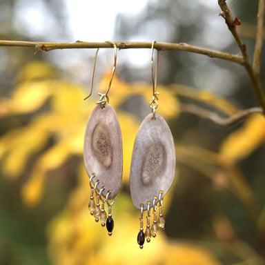 Natural Shaped and Polished Moose Antler Topaz and black beads; 14/20 Gold Beads and wire wrapped headpins; Sterling Silver welded jump rings; 14/2...